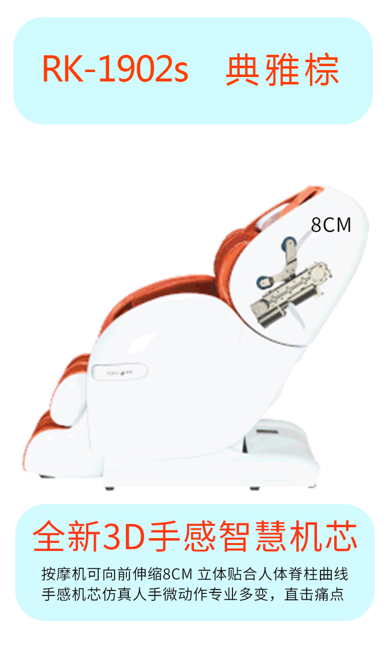 荣康RK-1902S电动按摩椅(典雅棕、蜜幻橘)