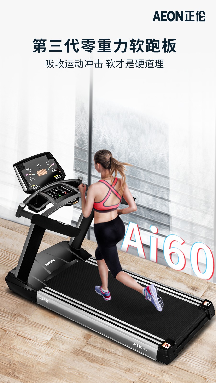 AEON正伦AI60智能家用软跑专利板跑步机 静音加宽跑台电动跑步机 专利软跑板,吸盘减震